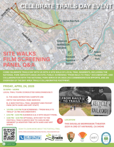 Come Celebrate Trails Day Event this Friday April 24 (12:30-3:30 pm) with Hayward Area Recreation and Park District (HARD), National Park Service, and others at the Douglas Morrisson Theatre. There will be local walking tours, “From Rails to Trail” documentary film screening, Audience Q & A, and an optional walk & site visit to the planned Foothill Trail Grove Way-to-Carlos Bee segment. Online info at www.haywardrec.org/1942/Foothill-Trails-Master-Plan <www.haywardrec.org/1942/Foothill-Trails-Master-Plan?fbclid=IwZXh0bgNhZW0CMTAAYnJpZBExY0l6SnlCdHVCQlpKemF4MHNydGMGYXBwX2lkEDIyMjAzOTE3ODgyMDA4OTIAAR6vWEYj6b3ni6VM_GQKHUdoOStpMbB999Ofalkd_rICd85xKcAW…>